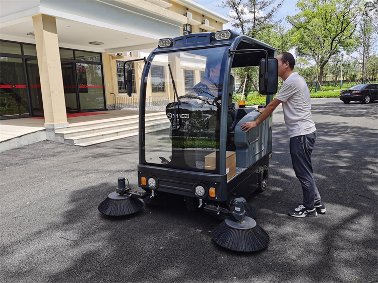 其次,我们要了解园区道路的宽度和需要清扫的面积。不同规格的驾驶式扫地车的清扫宽度是完全不一样的,如果选择的机器清扫宽度过小,则费时费力,如果宽度过大,则可能会妨碍通行和转弯。在这里我们推荐图中的这种半封闭式道路清扫车。它具有1800mm的清扫宽度,这个清扫宽度可以满足大部分公园路面的清扫要求,而又不会显得笨拙。这款扬子扫地机每小时可以清扫1.5万平米的道路,垃圾箱容量高达180L,非常适合作为各种公园园区沥青路面清扫车。