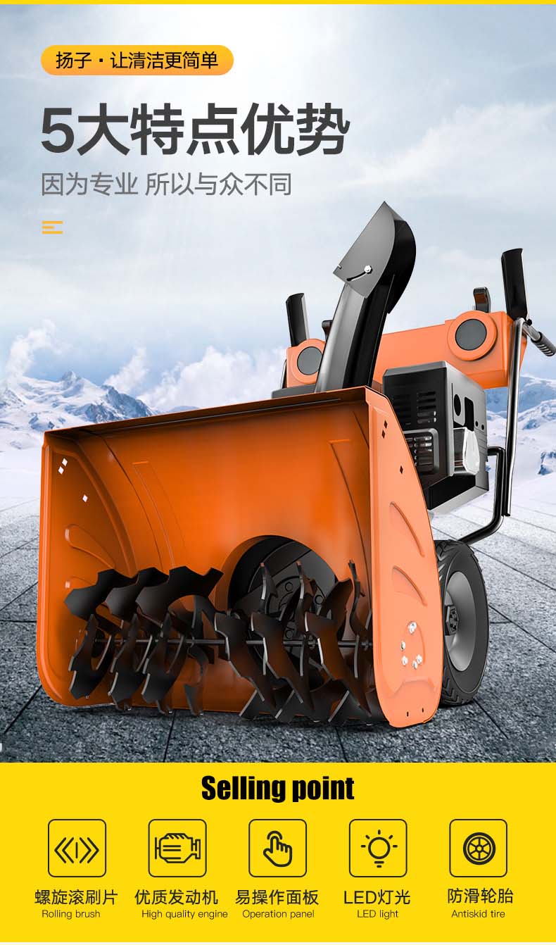 扬子YZ-SXJ001手推式扫雪机,厂家直销,省30%成本,油箱:6.5L,重量:117kg,宽度:71,大于10人工作效率,操作便捷,免费试机,买贵包退.专业的售后团队,免费上门指导操作和维护.扬子YZ-SXJ001手推式扫雪机,想进一步了解,请咨询在线客服或拨打官方免费热线,客服详细解答产品参数和最新活动价格