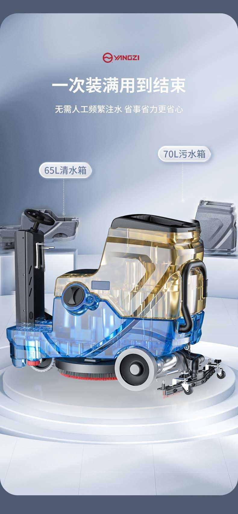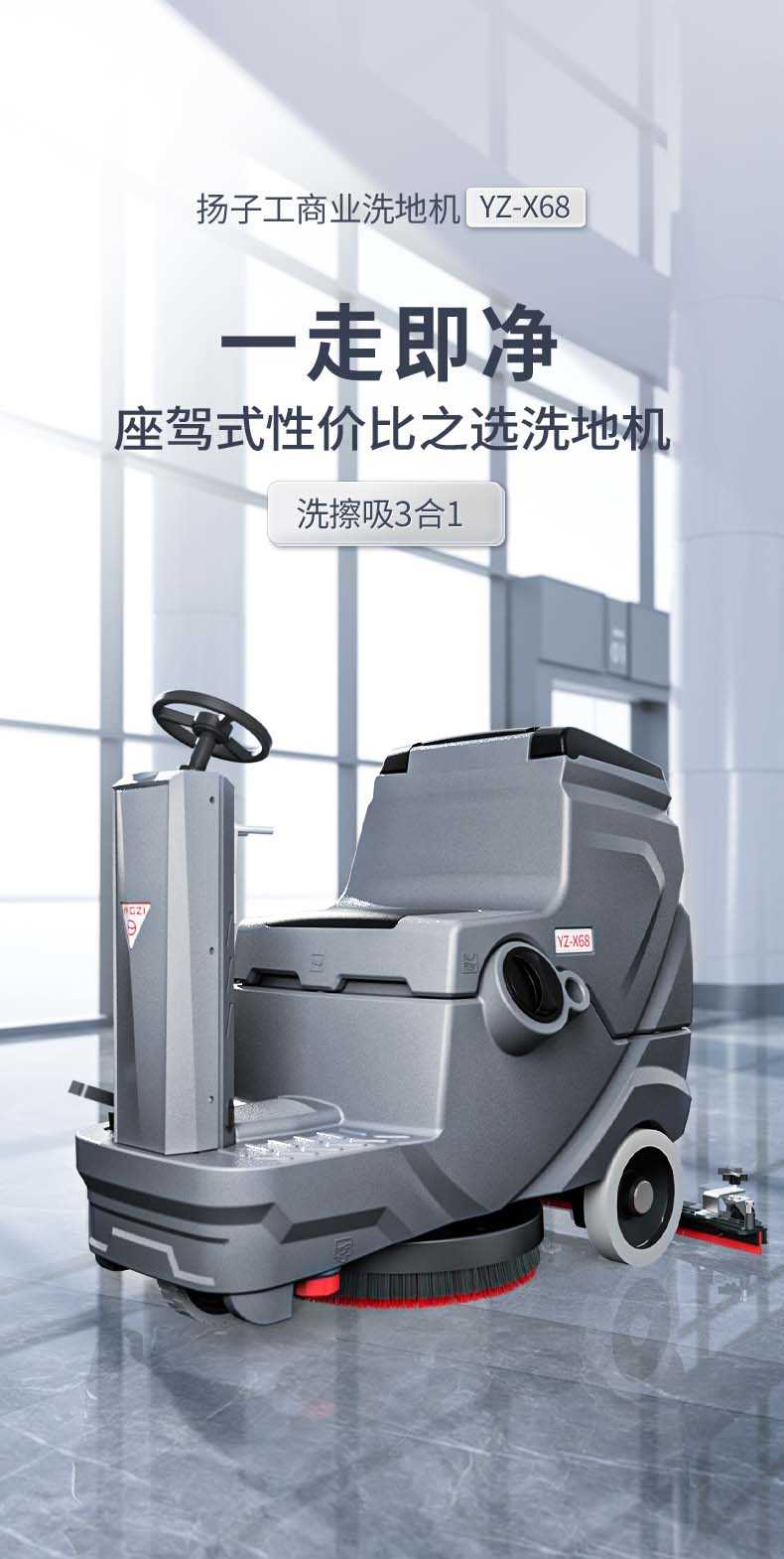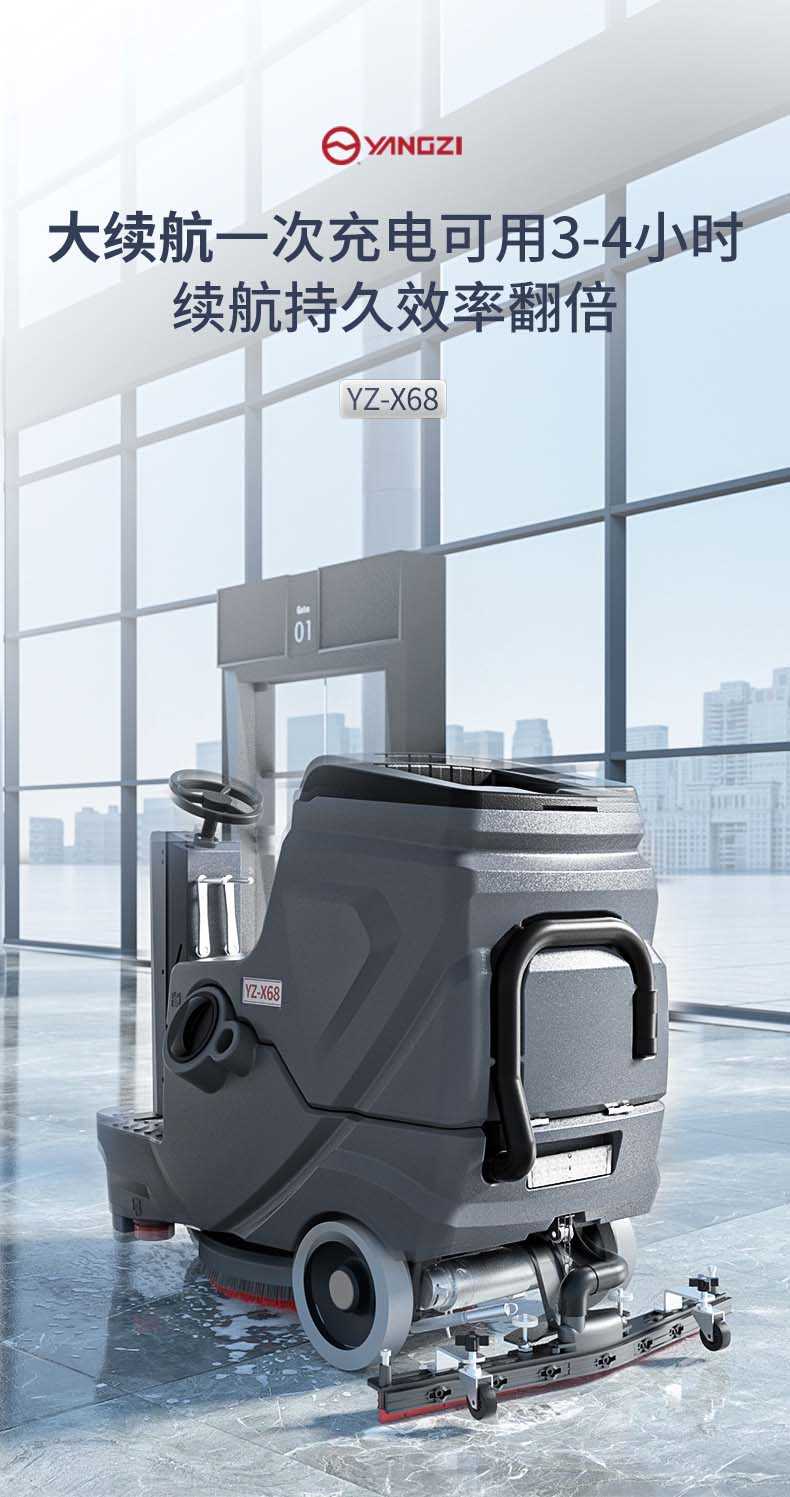 扬子YZ-X68驾驶式洗地机,拖地机,厂家直销,省30%成本,工作时间:4小时,重量:109.kg,效率:3650m2/h,大于15人工作效率,干净不留痕,免费试机,买贵包退.专业的售后团队,免费上门指导操作和维护.扬子YZ-X68分:免维护款和锂电款,想进一步了解,请咨询在线客服或拨打官方免费热线,客服详细解答产品参数和最新活动价格