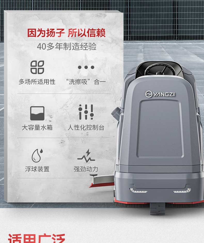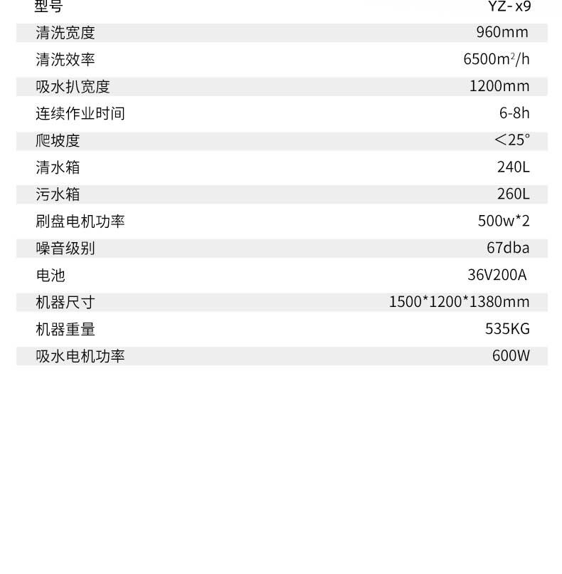 扬子YZ-X9驾驶式洗地机,拖地机,厂家直销,省30%成本,工作时间:6-8小时,重量:535kg,效率:6500m2/h,大于25人工作效率,干净不留痕,免费试机,买贵包退.专业的售后团队,免费上门指导操作和维护.扬子YZ-X9分:免维护款和锂电款,想进一步了解,请咨询在线客服或拨打官方免费热线,客服详细解答产品参数和最新活动价格
