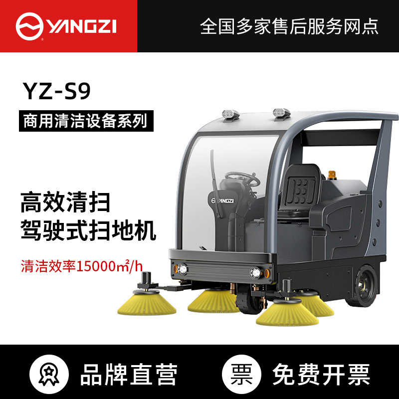 扬子YZ-S9驾驶式扫地车,清扫车,厂家直销,省30%成本,工作时间:6h,重量:760kg,效率:15000m2/h,大于15人工作效率,干净不留痕,免费试机,买贵包退.专业的售后团队,免费上门指导操作和维护.扬子YZ-S9分普通款和锂电款,想进一步了解,请咨询在线客服或拨打官方免费热线,客服详细解答产品参数和最新活动价格