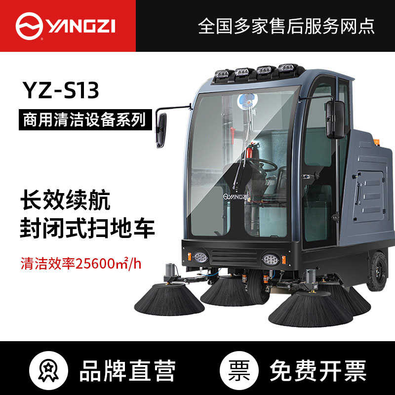 扬子YZ-S13驾驶式扫地车,清扫车,厂家直销,省30%成本,工作时间:5.5h,重量:990kg,效率:25600m2/h,大于20人工作效率,干净不留痕,免费试机,买贵包退.专业的售后团队,免费上门指导操作和维护.扬子YZ-S13分普通款和锂电款,想进一步了解,请咨询在线客服或拨打官方免费热线,客服详细解答产品参数和最新活动价格